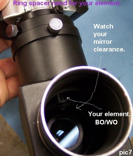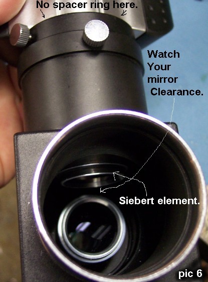 The picture above is the Siebert element in the Burgess binoviewer. The tolerance in the nose of some these binoviewer may make the threading tight after three or 4 turns. This is ok if it threads enough to hold properly.. 2