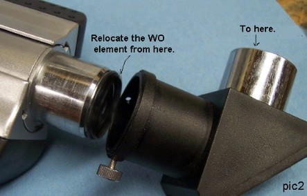 It is possible that the WO element might not focus in a 2" diagonal. In this case use the 1.25" setups for the WO Barlow element in picture 2 and 2b. Important Information For Williams Optics 2" diagonals and others with low profile 2" to 1.25" stepdown adapters you will likely need to use the parfocal ring to keep the OC from extending too far into the diagonal. Be careful not to come into contact with the mirror.